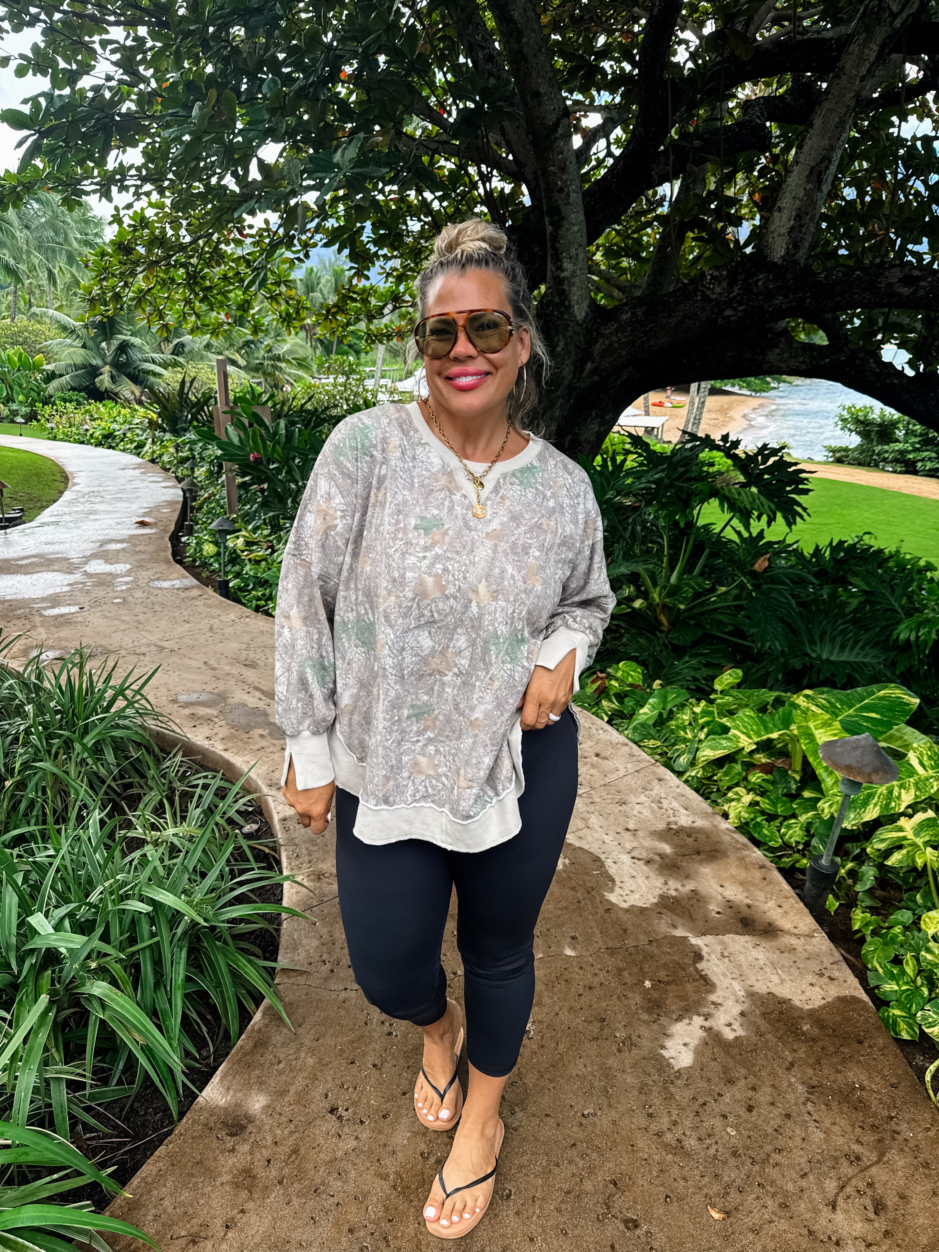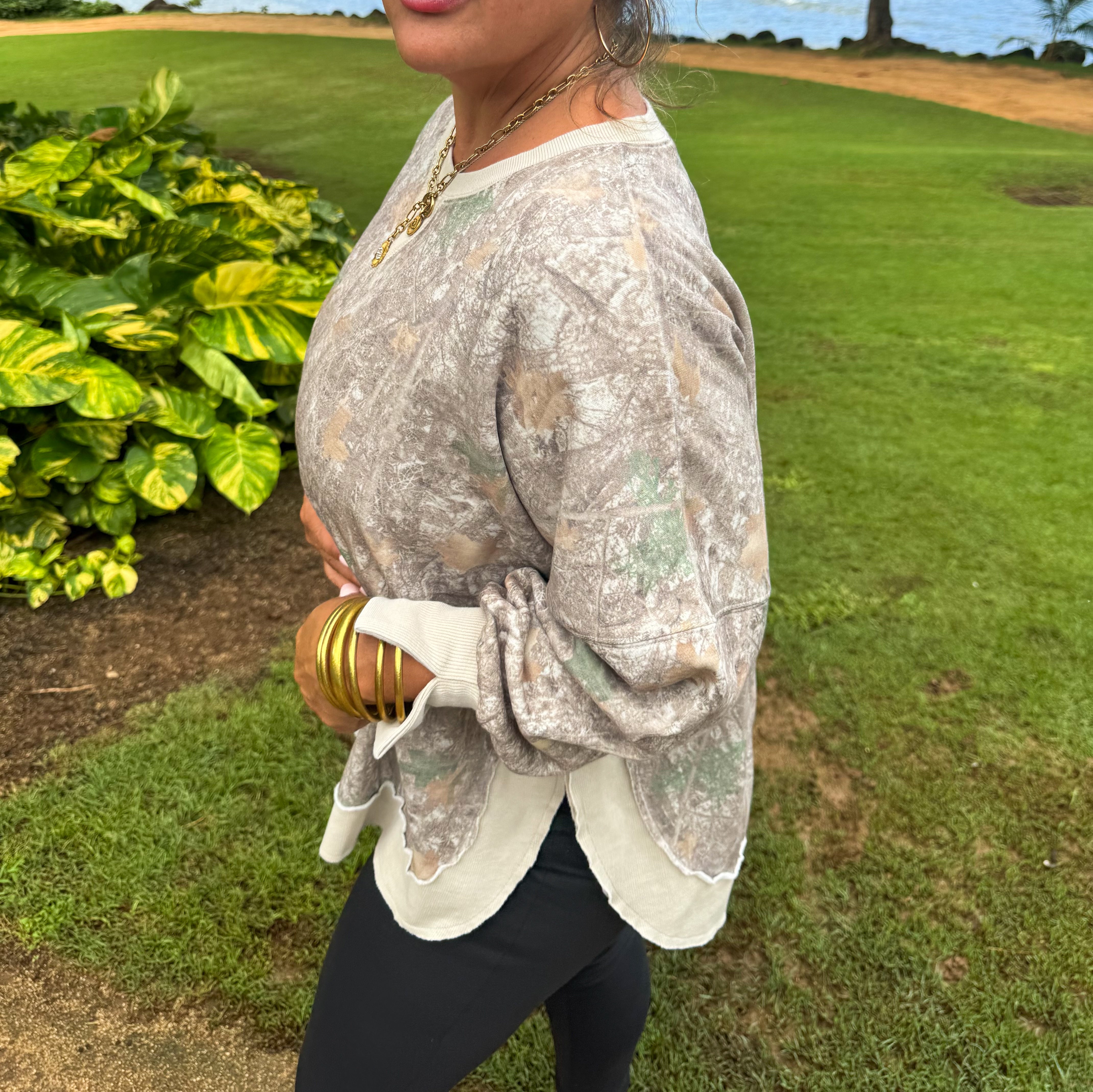 The perfect washed cotton flattering sweatshirt that everyone needs! Faded “vintage” colors. Features flattering rounded front and back hem with side slits!