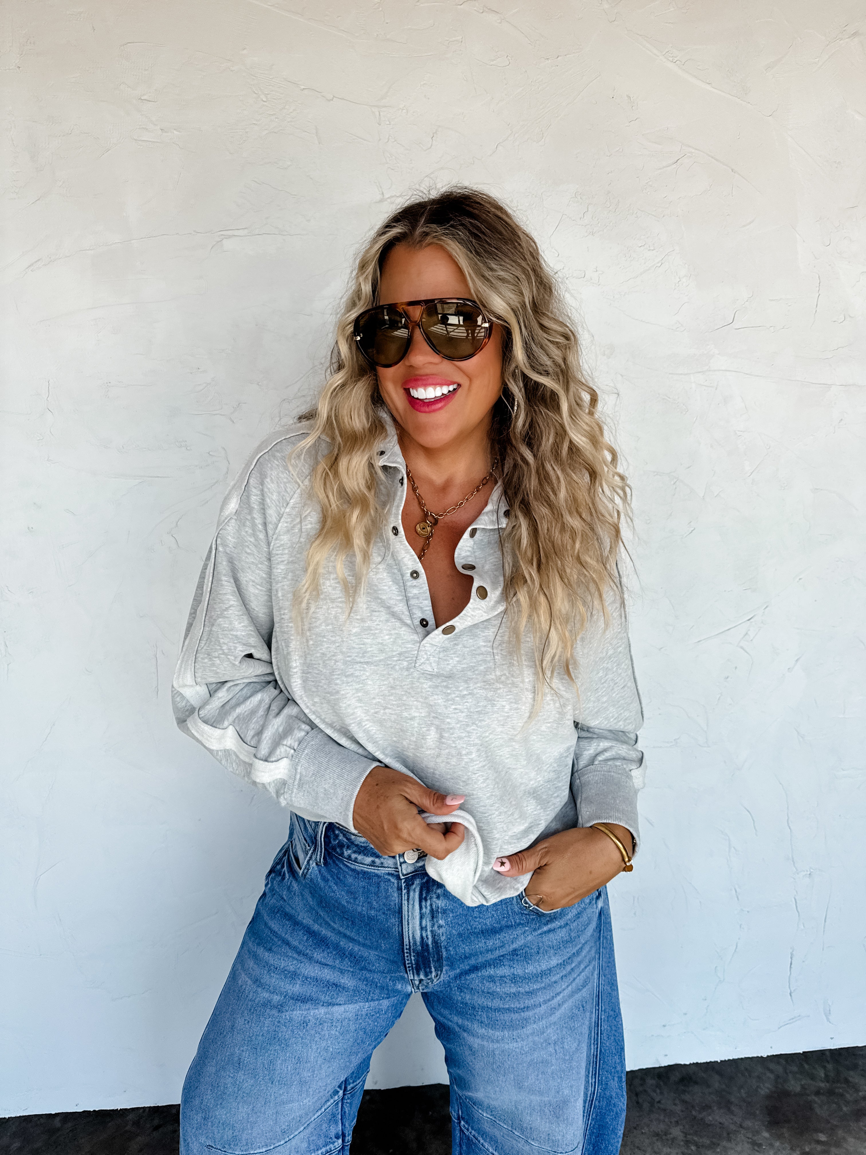 PREORDER- LONGER LENGTH- MARLEY SNAP BUTTON SWEATSHIRT