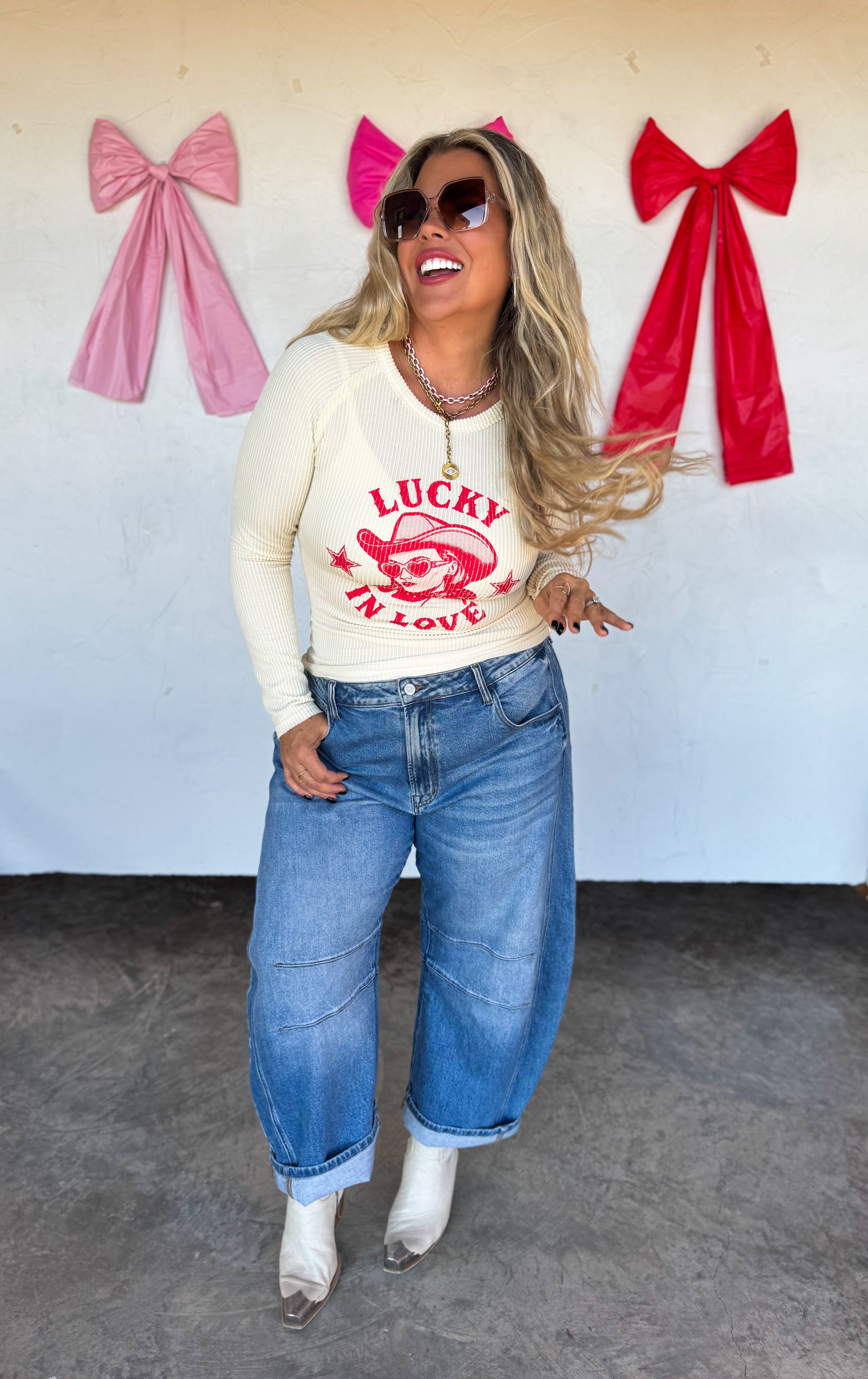 These ribbed graphic tops are the perfect tee for Valentines! Features reverse hem details on shoulders and sleeves and a screen printed design on the front! So cute!
