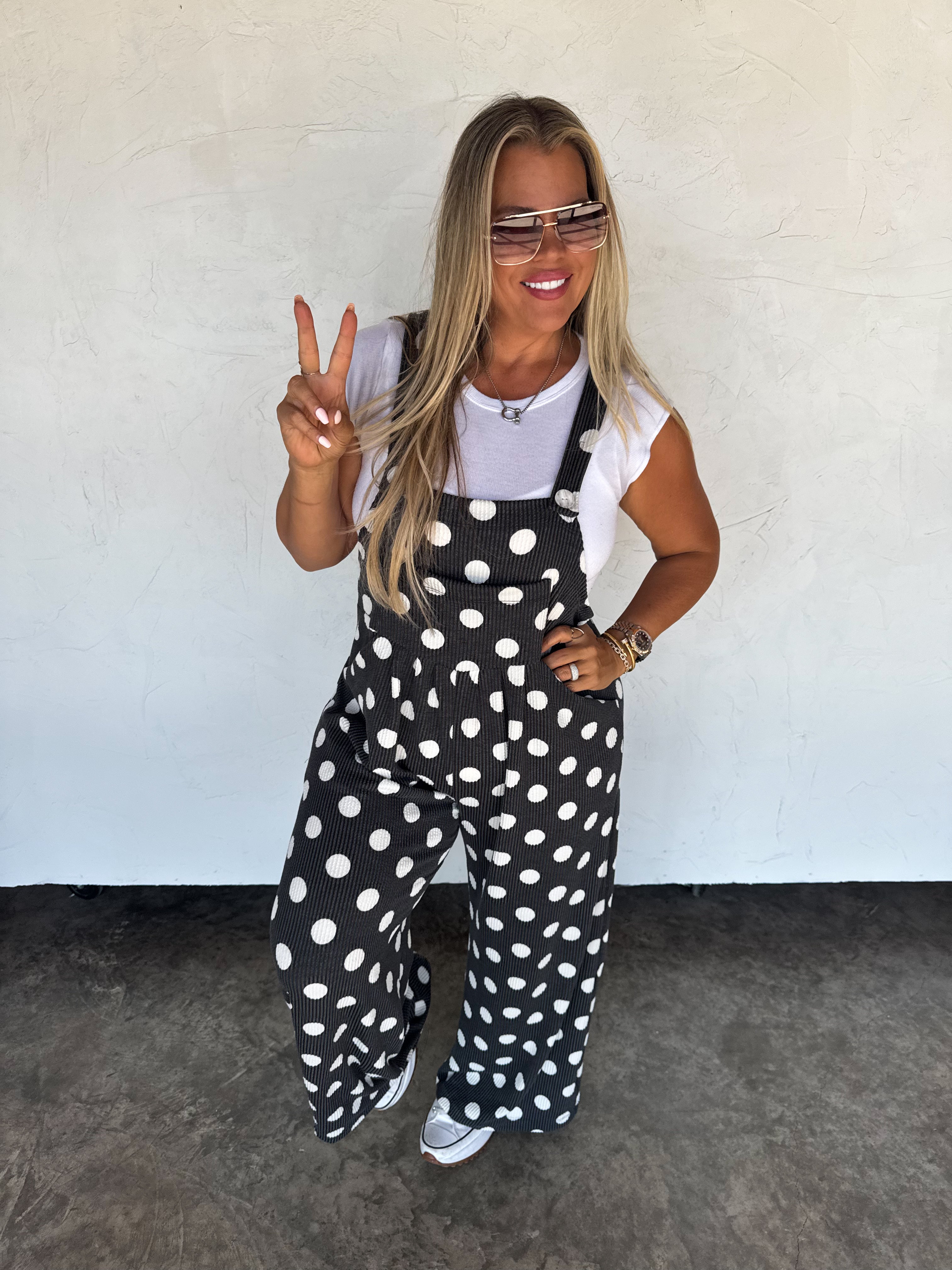 Premium quality, vintage color polka dot ribbed fabric ensures the overalls are thick and not sheer. Features include pockets and an adjustable button strap for fit, (fasten the button up or down to adjust length) complete with a stylish front pocket.