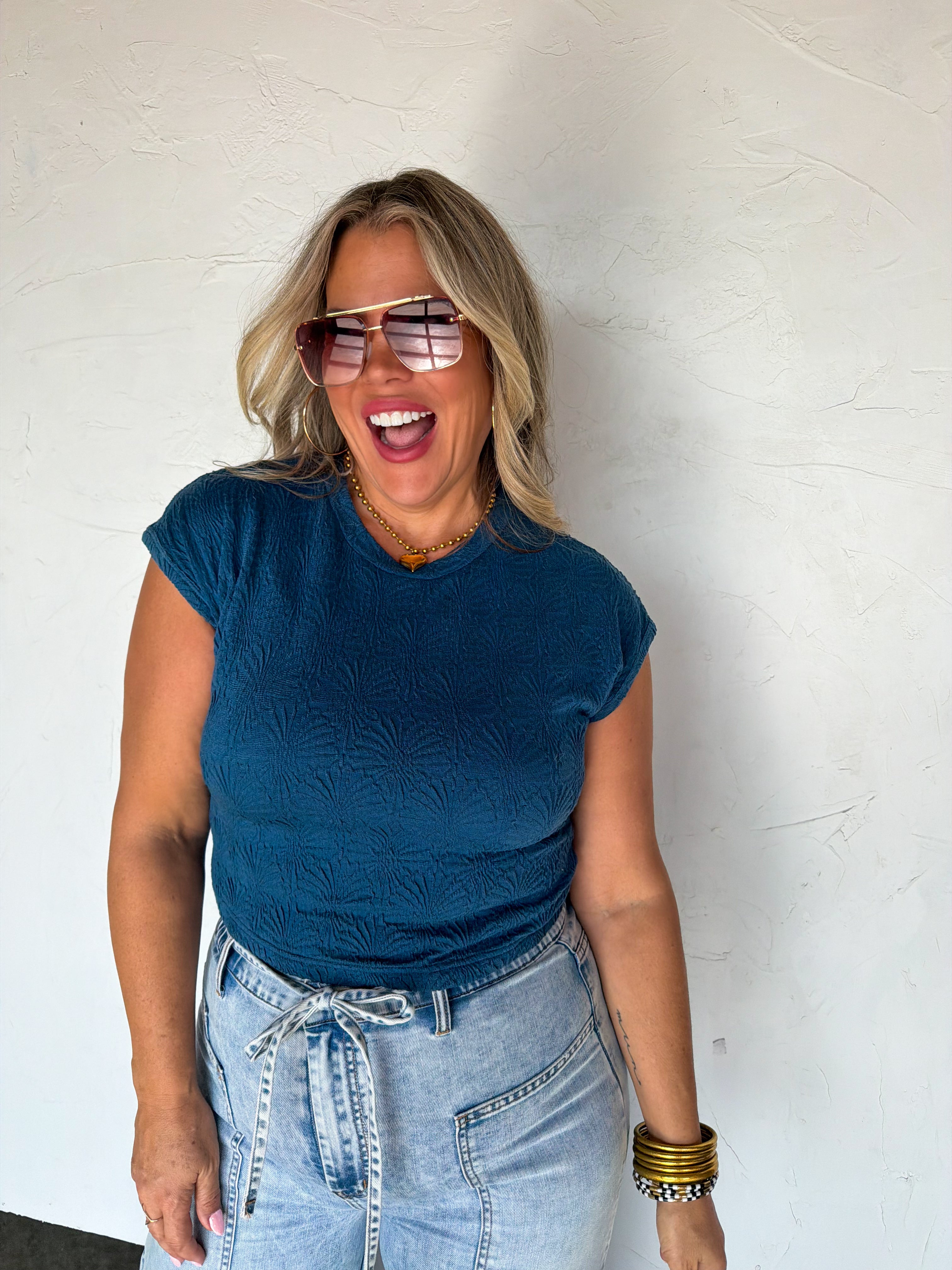 Premium body contouring fabric. Perfect for wearing alone or layering with cardi's! Soft and stretchy and the perfect basic- not so basic top! Cap sleeves with a “waist line” length