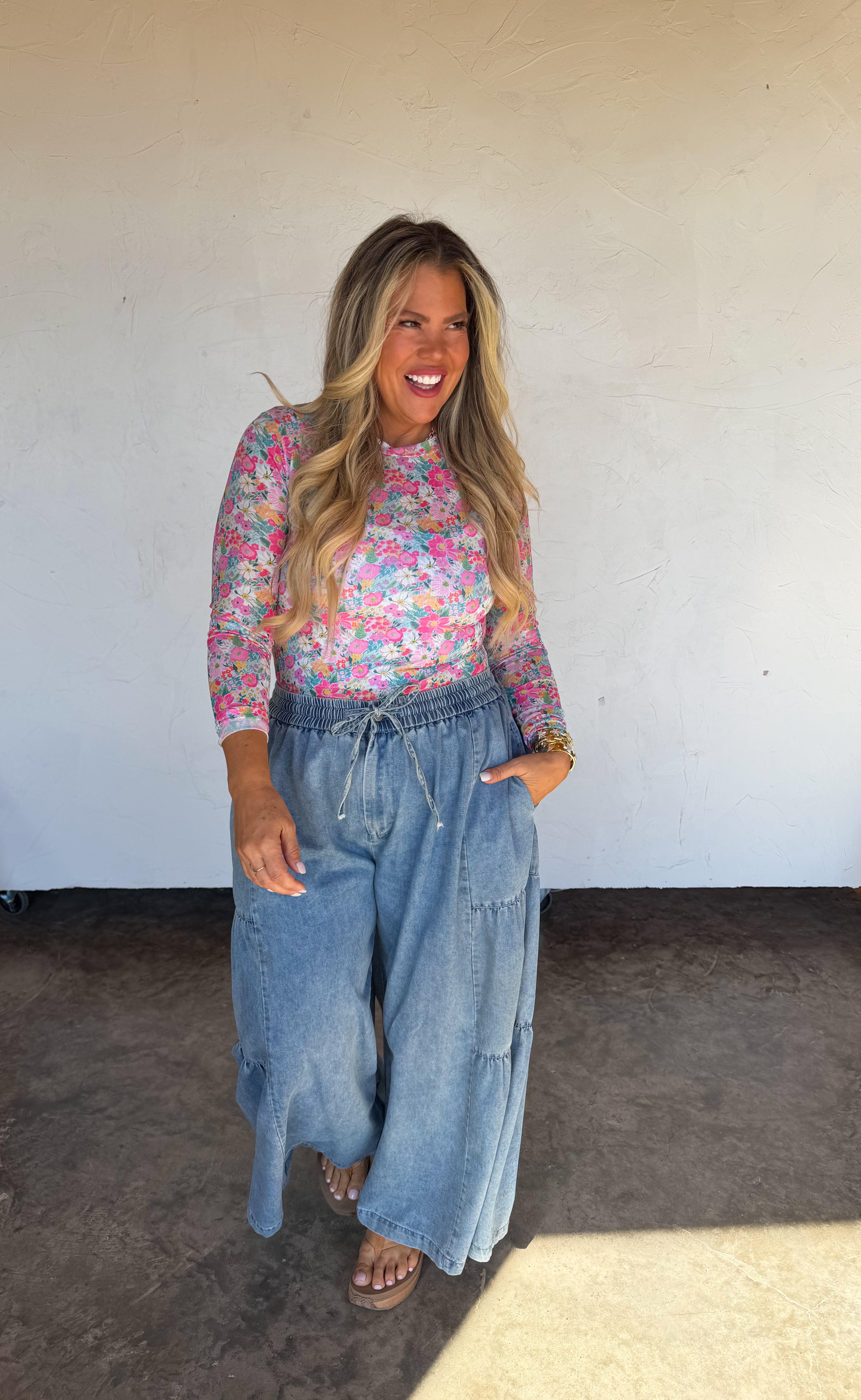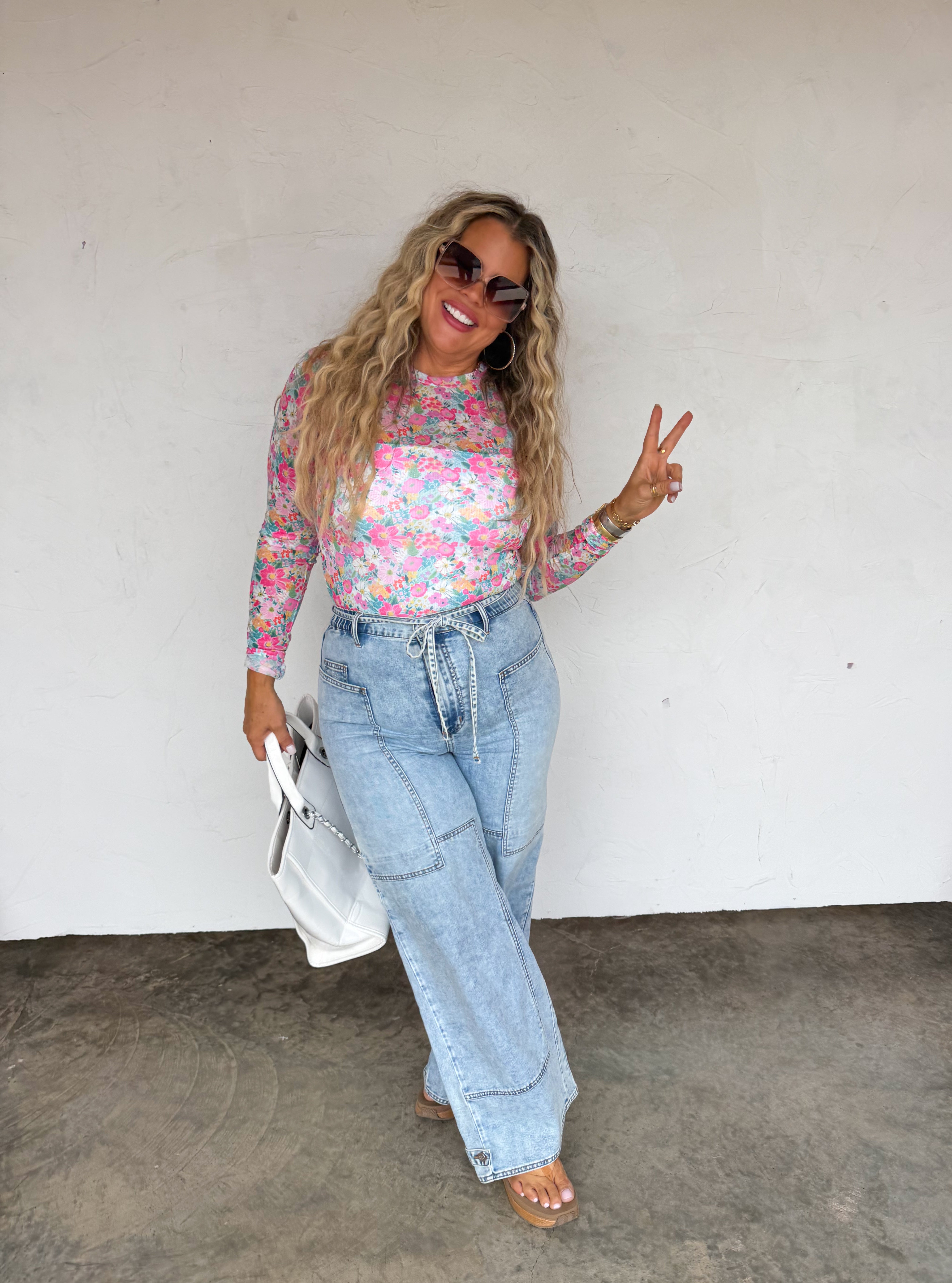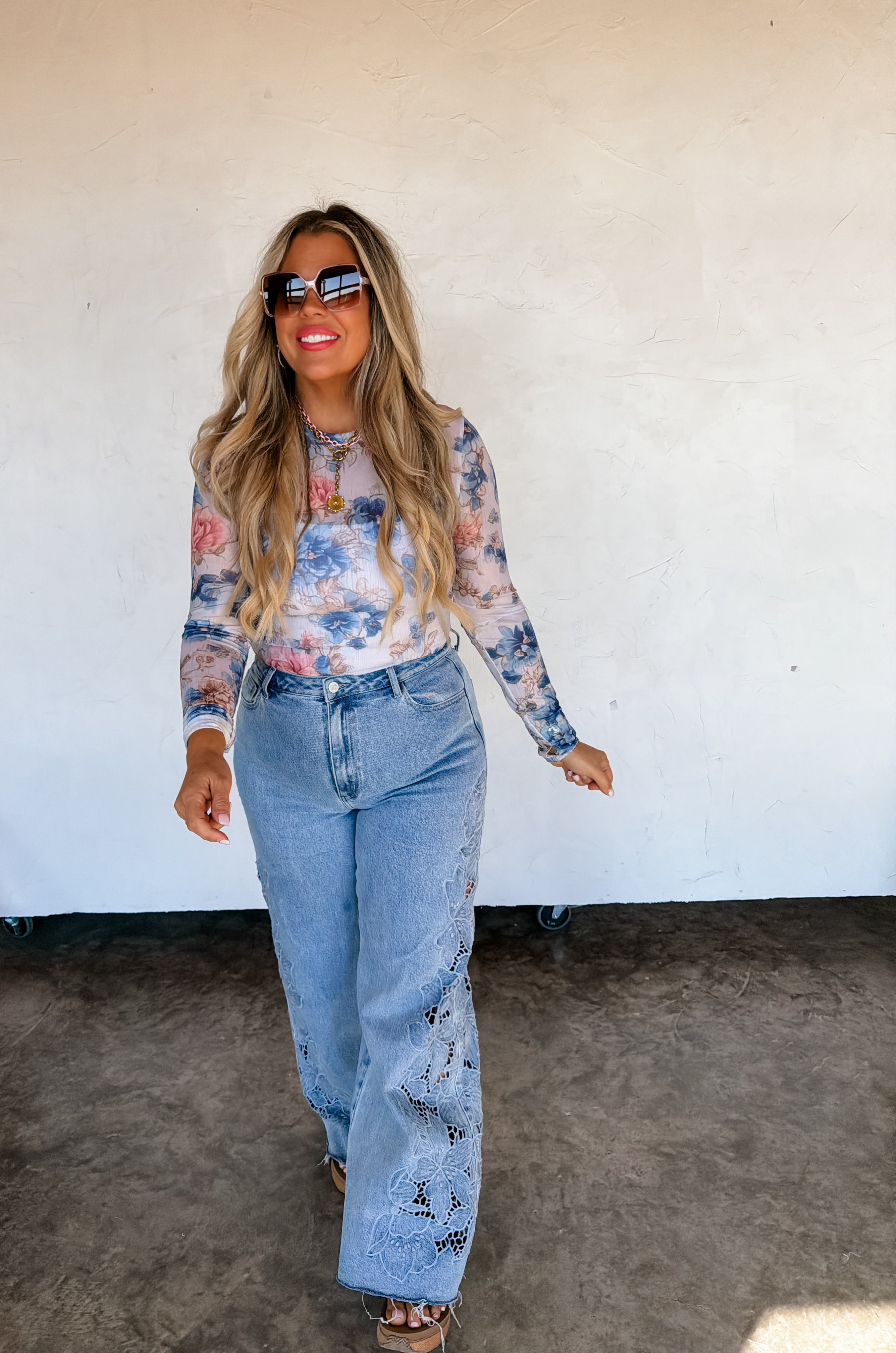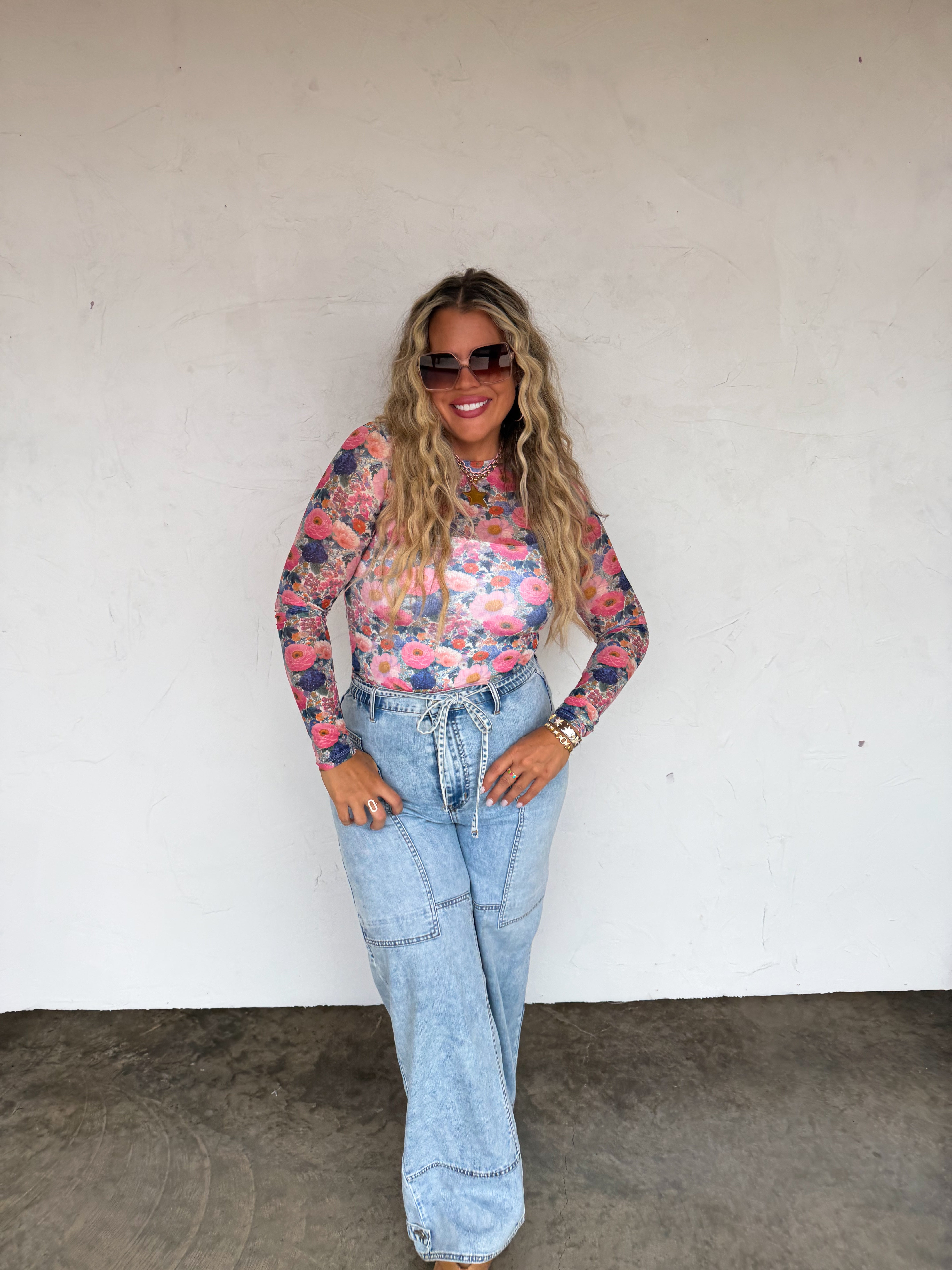 OUR SPRING PRINTS ARE HERE!! Super cute for layering, this sultry stretchy mesh print long-sleeve top features a totally sheer design. Perfect worn alone or paired under your favorite cardigan, vest or sweater! Crew neck and thumbhole details.