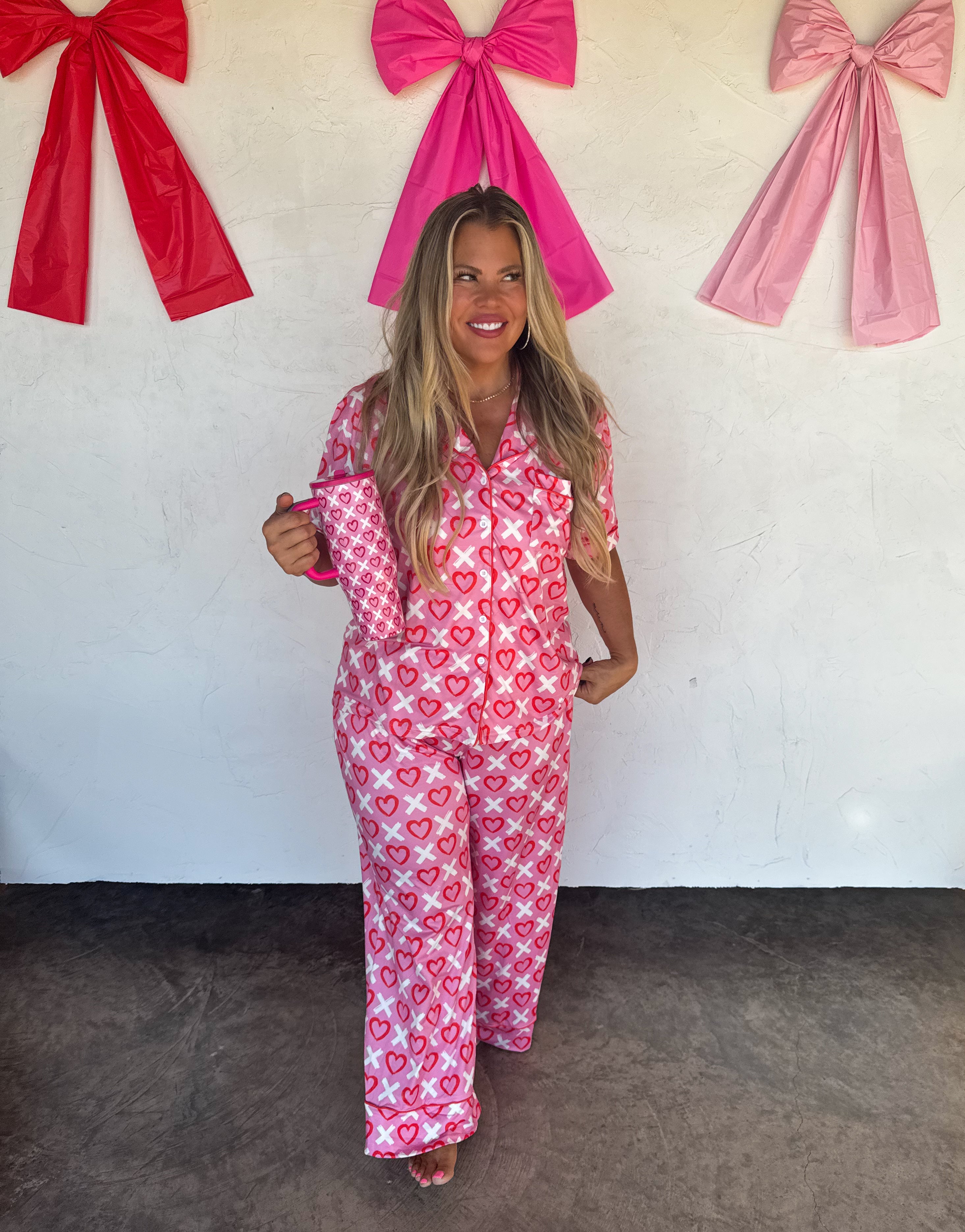 Our Luxe PJ Lounge sets are the perfect sleep set for both comfort and style. Features adorable contrast color piping trim, and the softest stretchy fabric! Button-up top with short sleeves and matching PANTS, these cute new designs will keep you looking good while you relax. Ultra-soft, STRETCHY and lightweight for a relaxed feel. Pants have pockets and elastic waist.