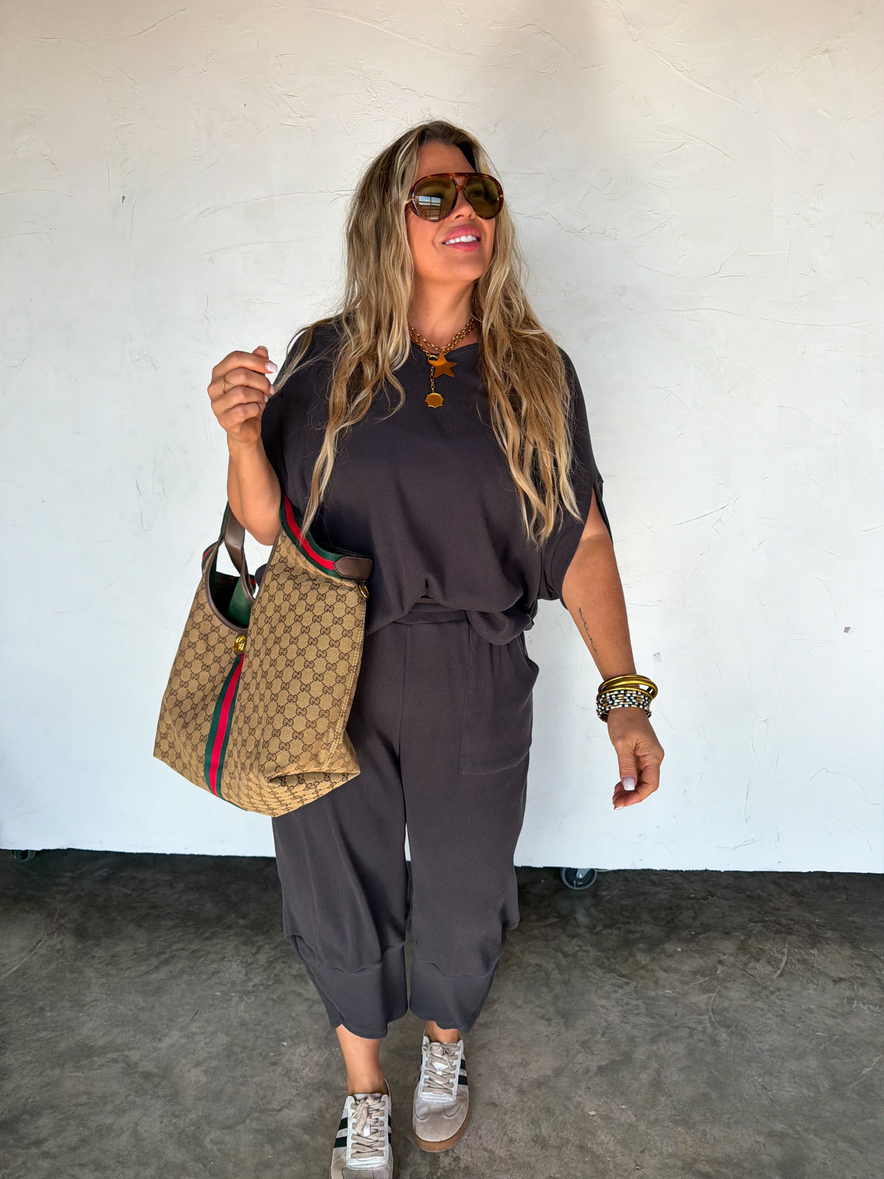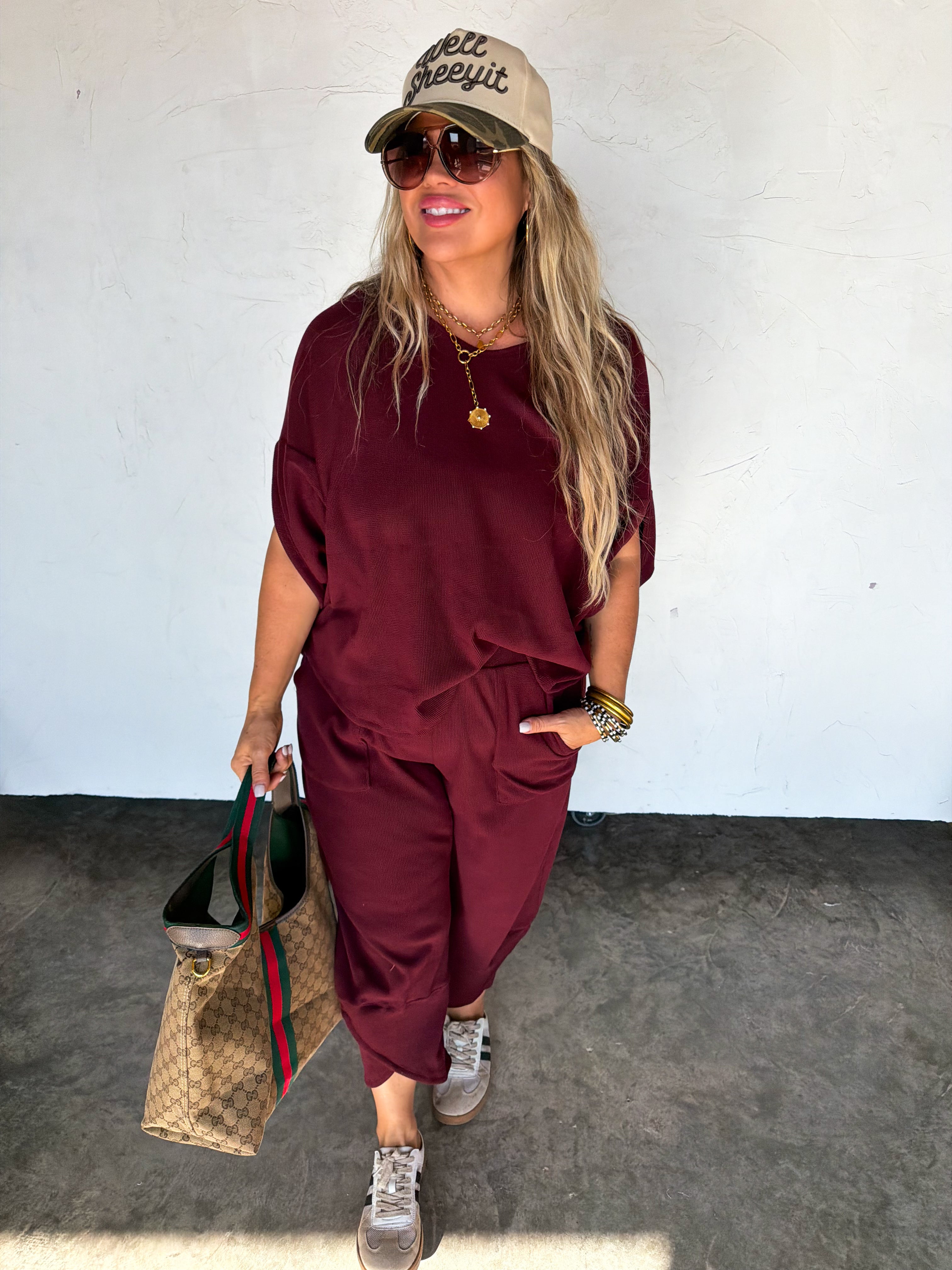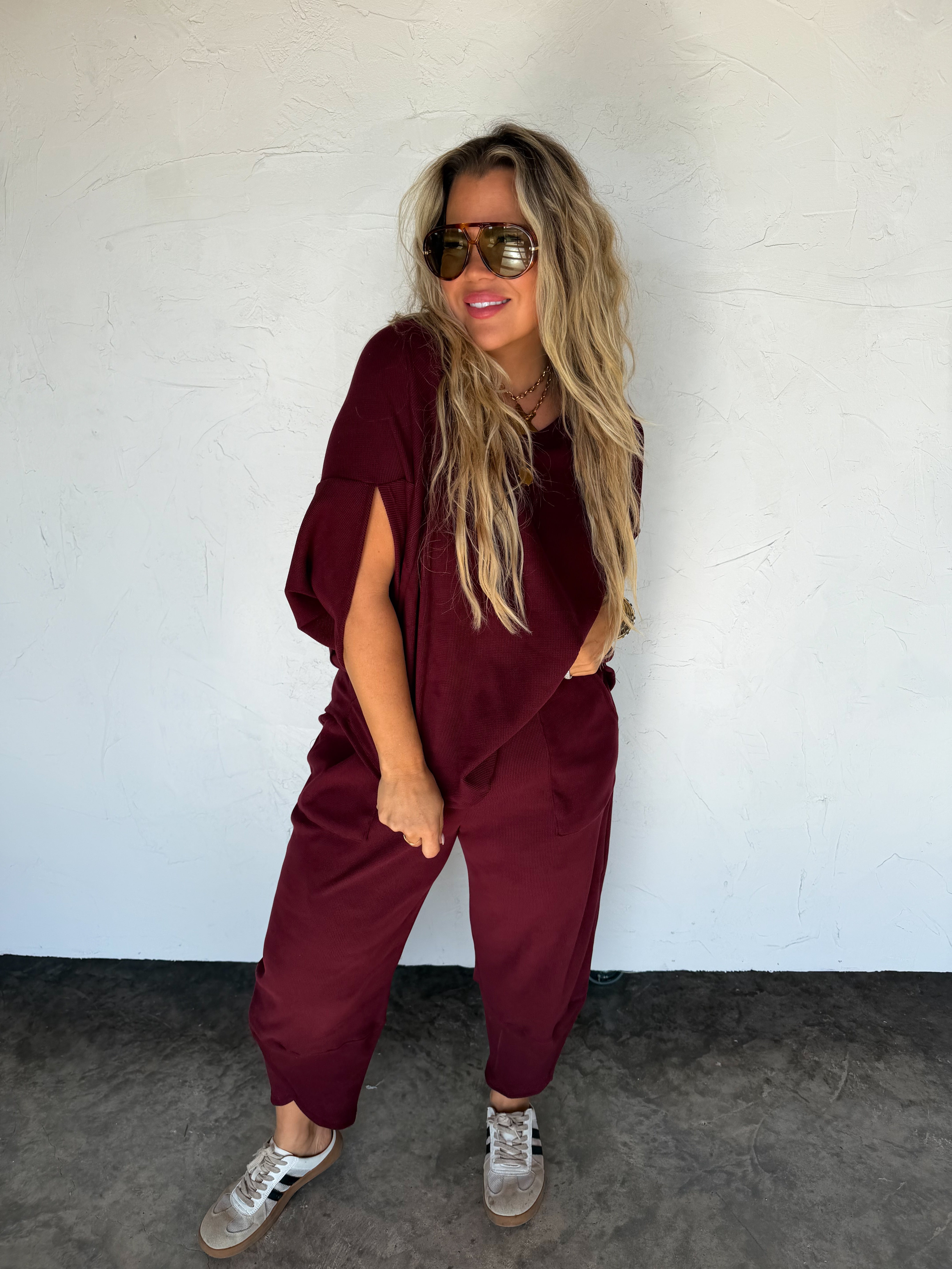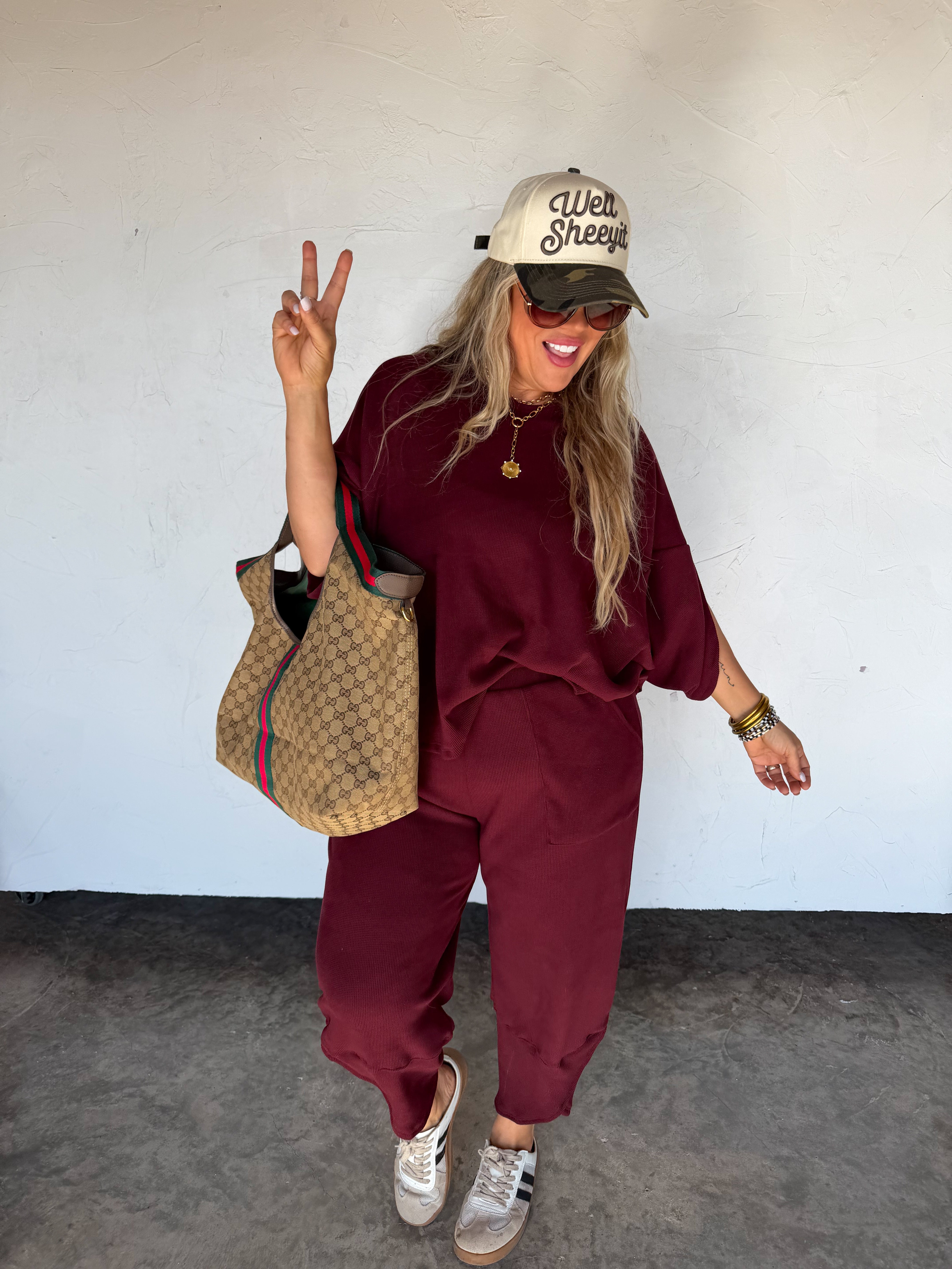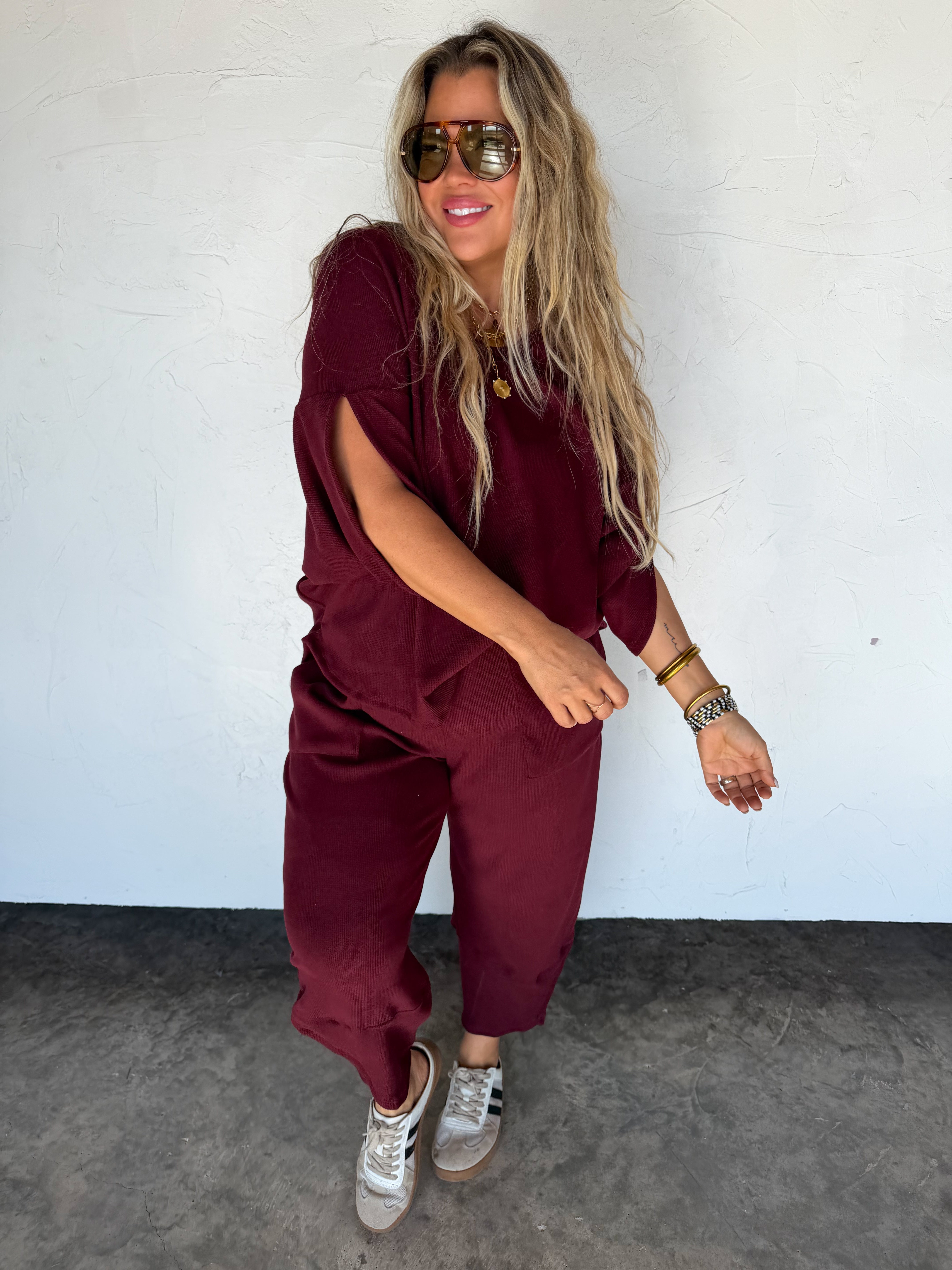 This comfy fleece waffle set will be the SOFTEST and most comfortable thing to put on your body!! The cute dolman style top features flattering side slits arms with a loose fit. Bottoms are relaxed fit, wide-leg and slight barrel fit with a crossover seam detail hem . Pair this cute set with sneakers or slides for an easy, put-together look that’s as comfortable as it is chic.
