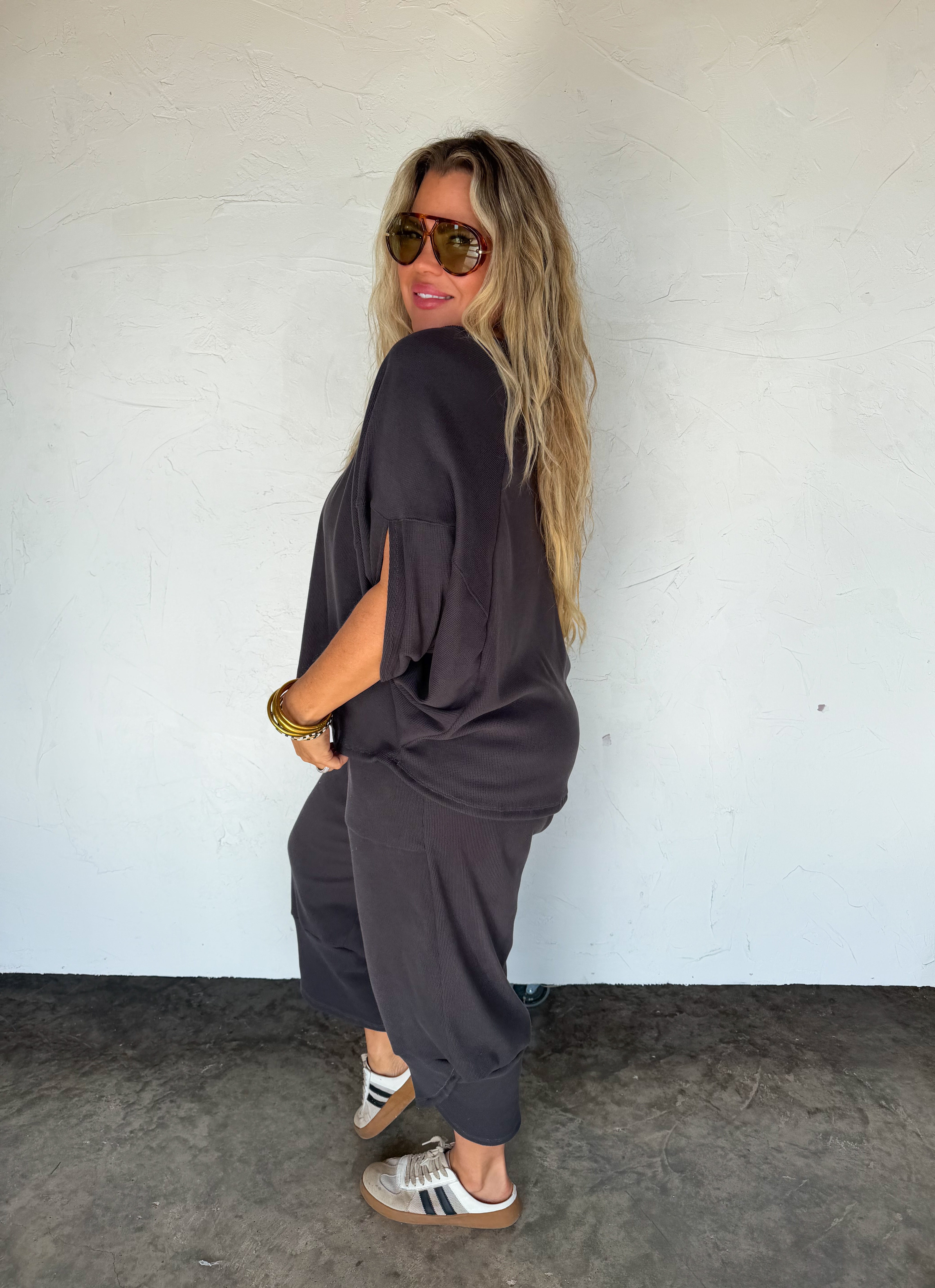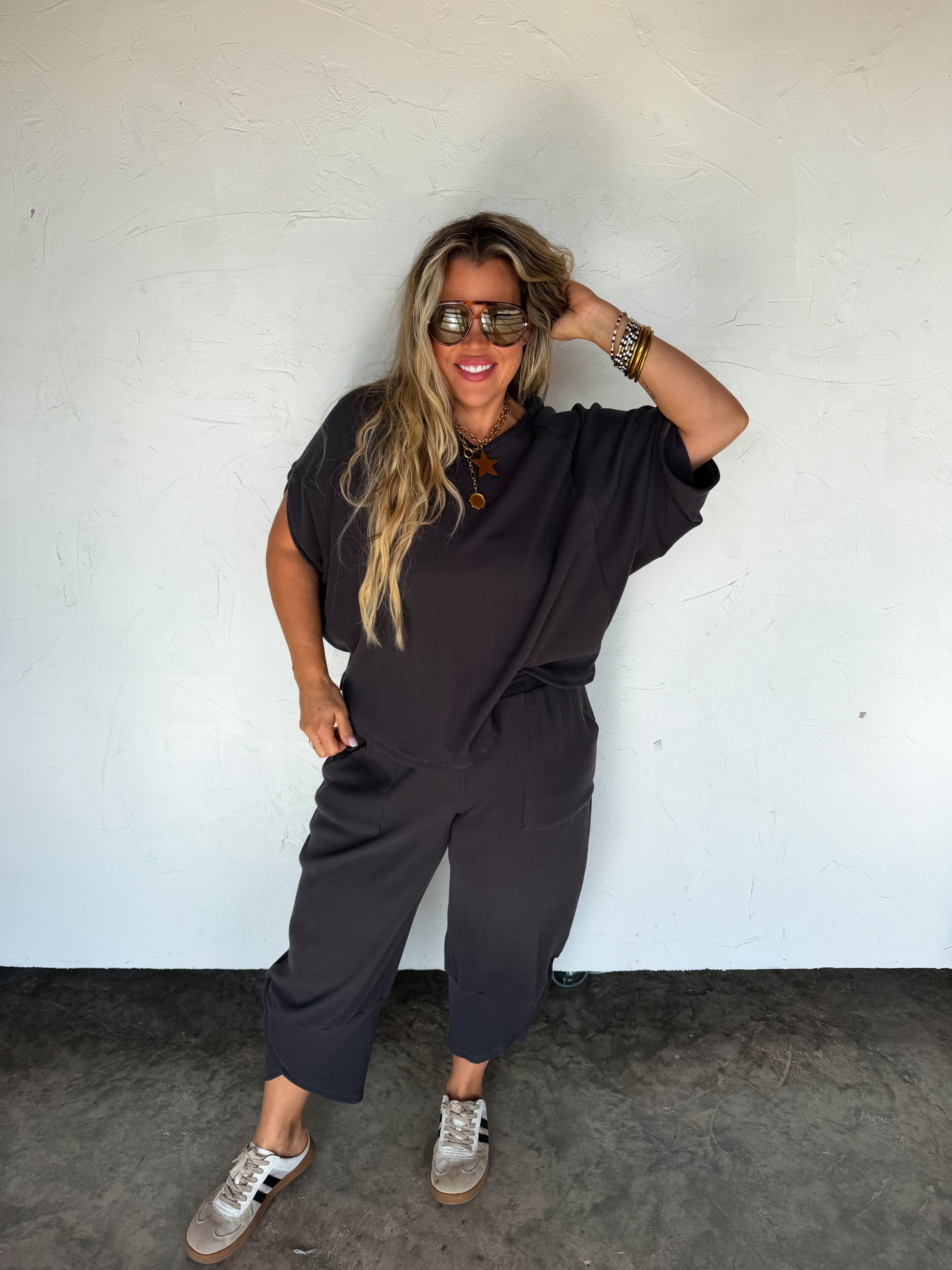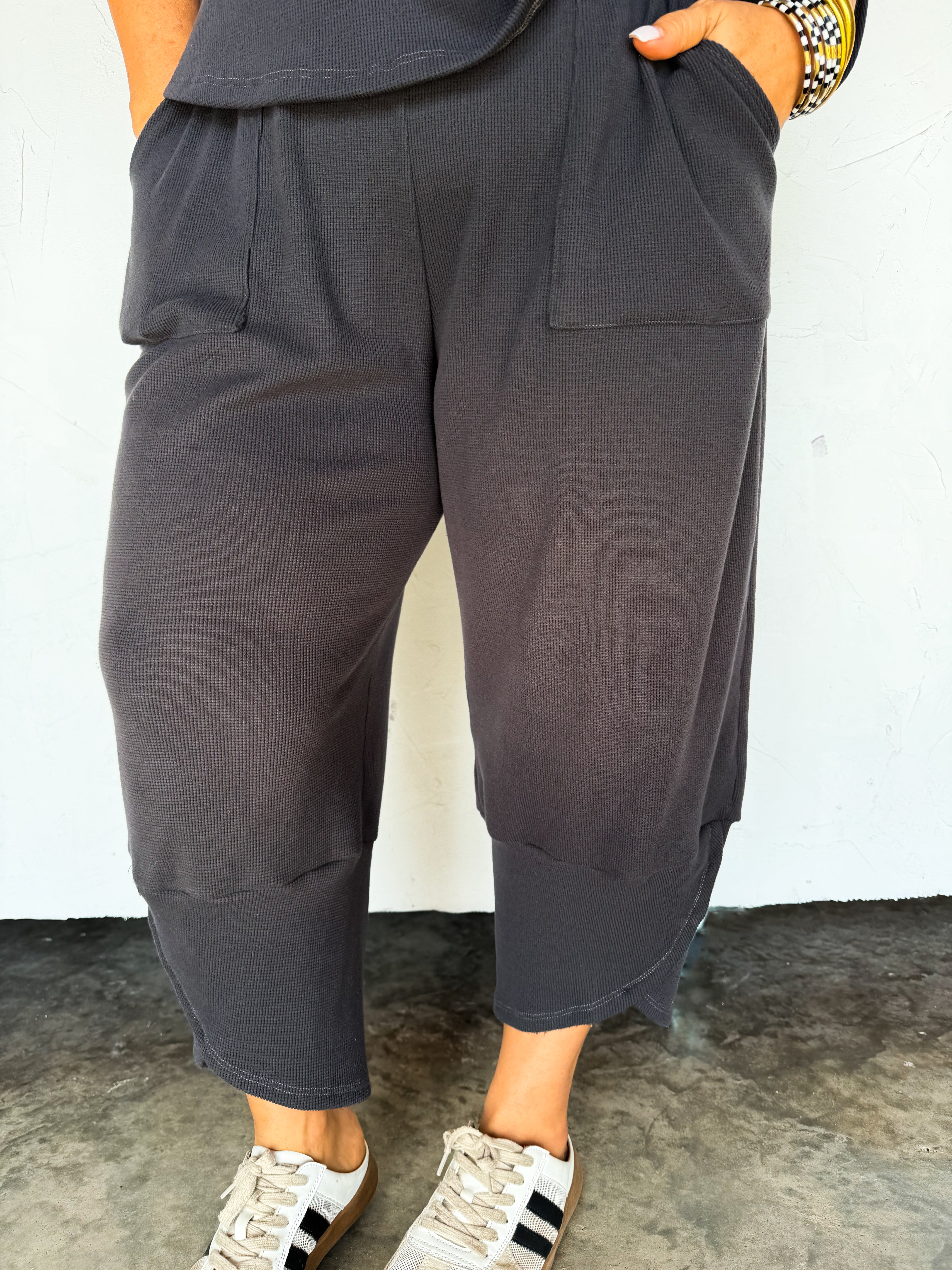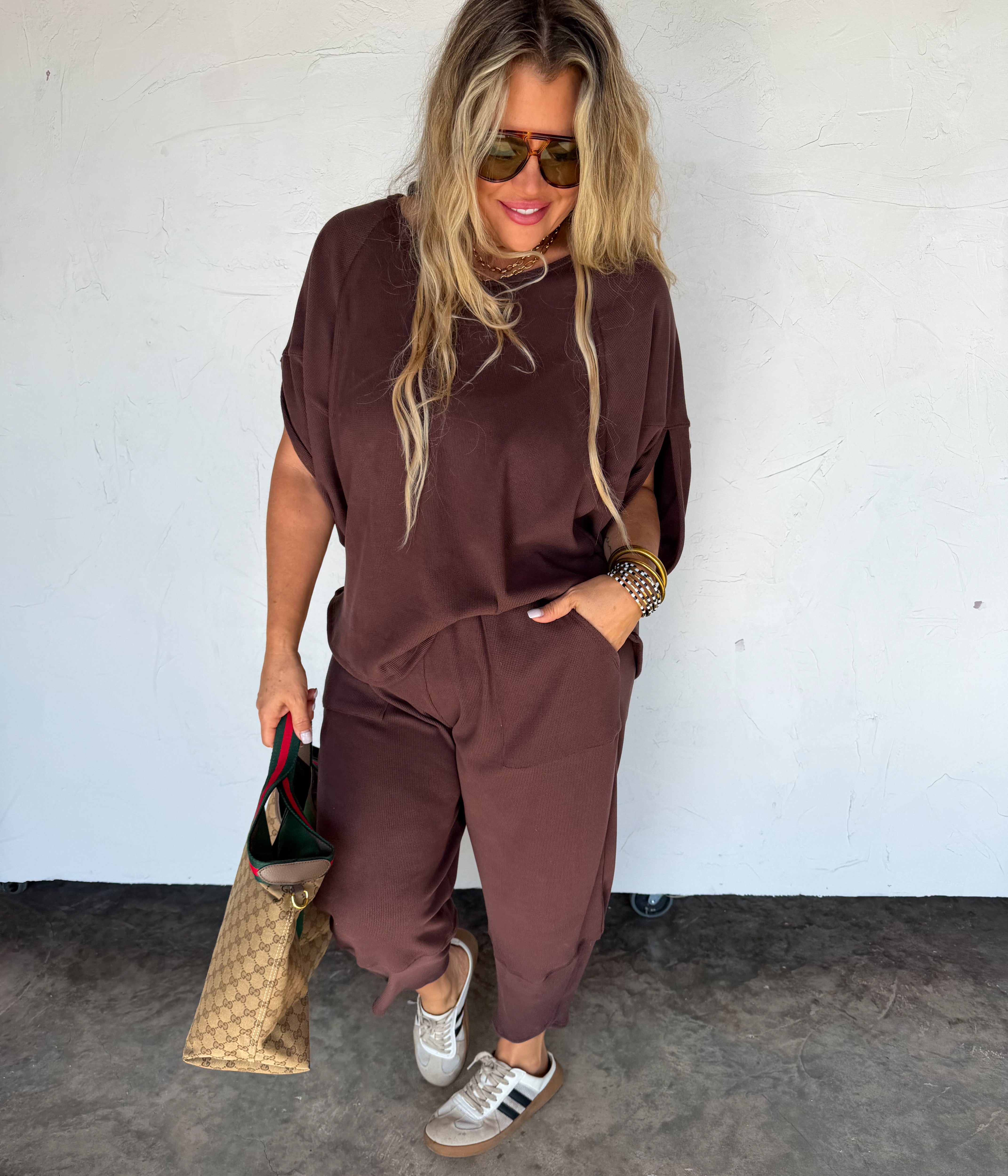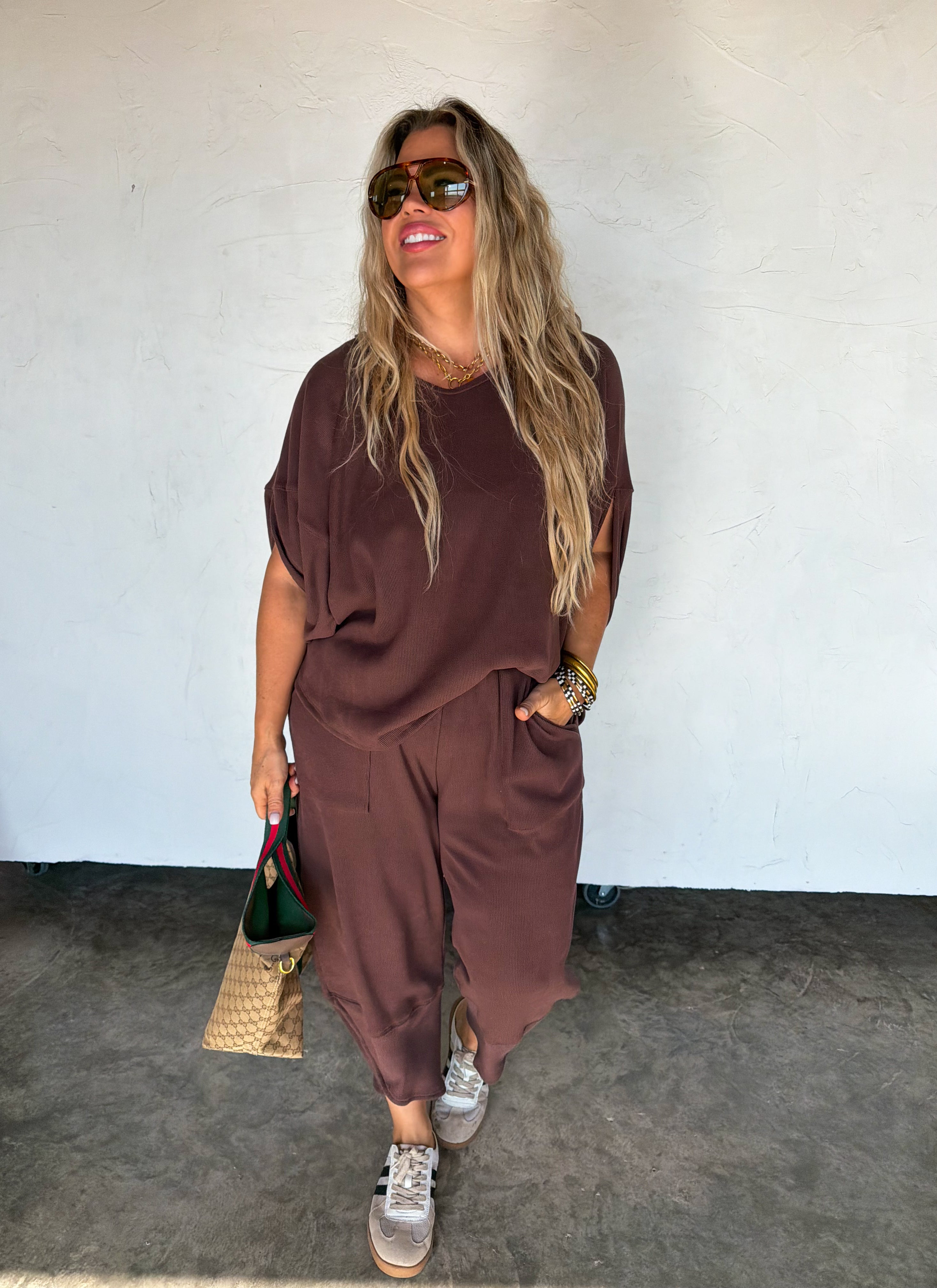 This comfy fleece waffle set will be the SOFTEST and most comfortable thing to put on your body!! The cute dolman style top features flattering side slits arms with a loose fit. Bottoms are relaxed fit, wide-leg and slight barrel fit with a crossover seam detail hem . Pair this cute set with sneakers or slides for an easy, put-together look that’s as comfortable as it is chic.